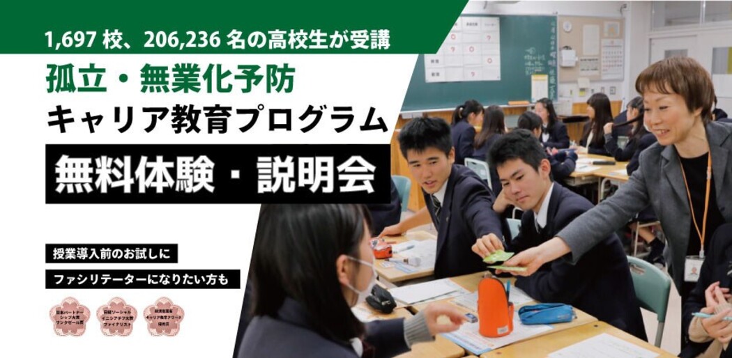 「マネーコネクション®/ライフコネクション」は、主に高校生を対象にした、無業・孤立化を防止する出張授業プログラムです。認定ファシリテーターを募集するにあたり、無料の体験・説明会を実施します。
