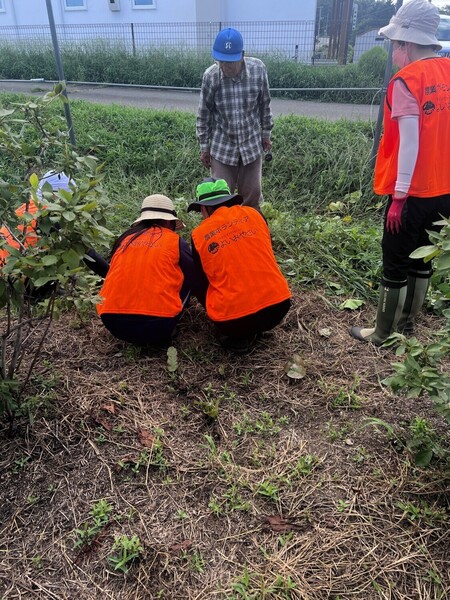 参加者さんは全員よいおやさいのビブスを着て作業します。参加メンバーがわかる上に道路などからも活動していることがわかり、一体感が生まれます。