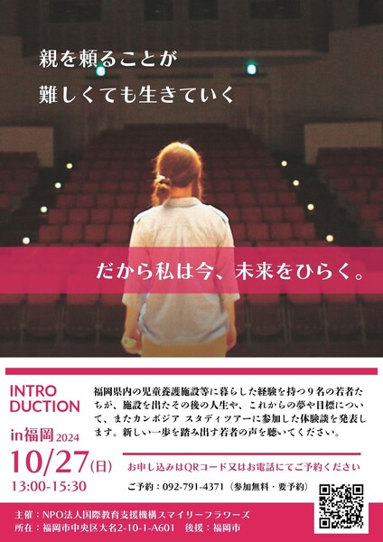 児童養護施設を退所した後、専門学校や大学等へ進学する子どもたちを支援する(返済不要の)奨学金支援プログラムとしてNPO法人ブリッジフォースマイルが創設・運営していた「カナエール」の福岡事務局として活動を展開。