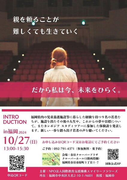 10/27に、児童養護施設等に暮らす/暮らした若者(ユース)による海外体験報告と夢を語るスピーチ大会のイベントを実施します!そのイベントを一緒に盛り上げてくれるボランティアを募集します★