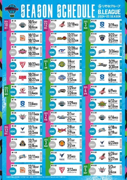 りそなグループ B.LEAGUE 2024-25シーズン佐賀バルーナーズ主催のホームゲーム30試合