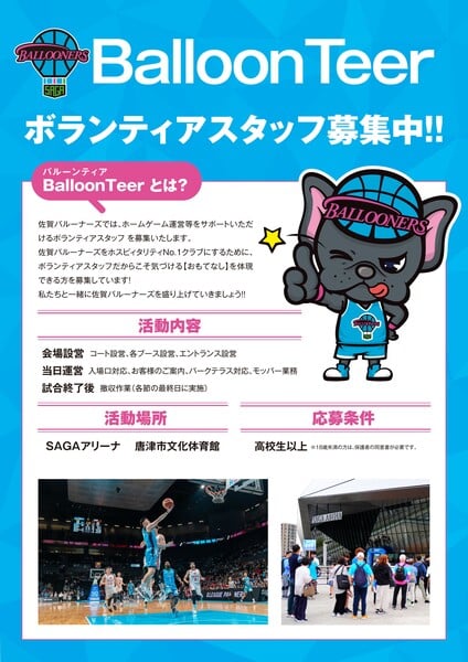 2024-25 SEASON佐賀バルーナーズボランティア【BalloonTeer】募集中!