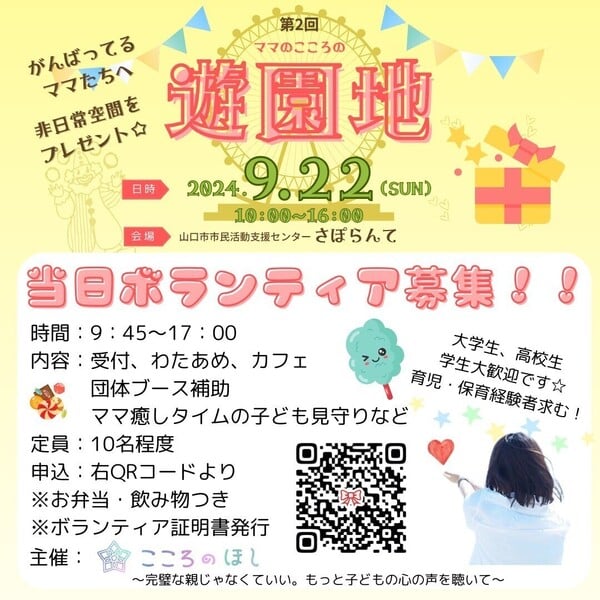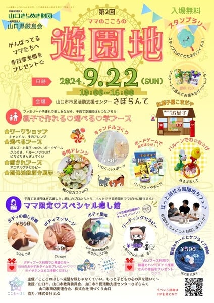 - 山口市イベントボランティア募集 9/22ママとこころの遊園地