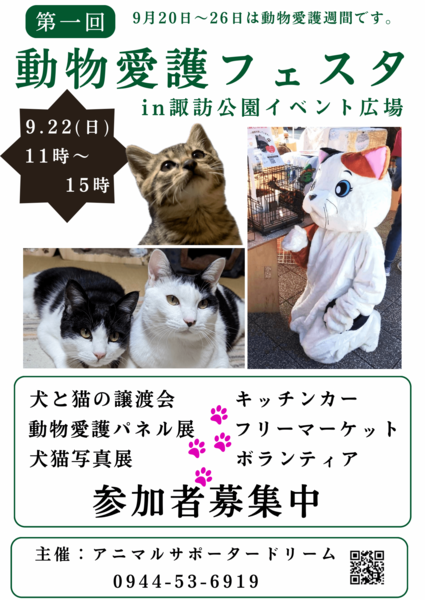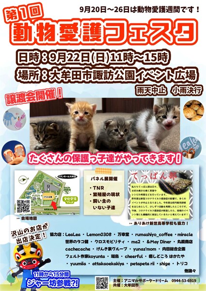 大牟田市諏訪公園にて動物愛護フェスタを9月22日に開催します。