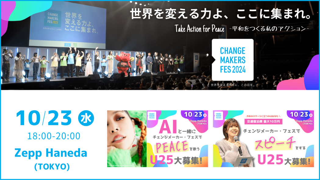 Zepp Haneda(TOKYO)を舞台に、SDGsにつながる社会貢献活動に取り組む25歳以下の子ども・若者のためのライブフェス(主催:認定NPO法人フリー・ザ・チルドレン・ジャパン)。今年は、平和教育活動に取り組む歌手AIさんとともに、「Take Actkon for Peace~平和をつくる私のアクション~」をテーマに開催、AIさんのステージの他、戦争を体験したコンゴ民主共和国の元子ども兵、同世代のスピーカー、モデル…など、多彩なゲストが登壇し子どもたちの活動を応援します。子どもたちの未来をつくるライブイベントにぜひご協力ください!