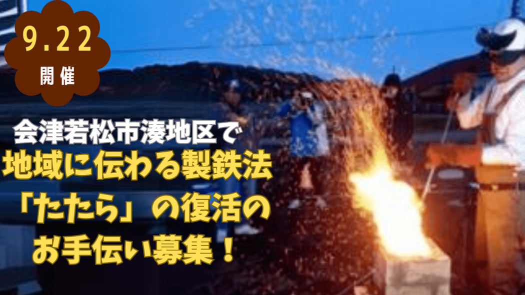 - 会津若松市湊地区で、地域に伝わる製鉄法「たたら」の復活のお手伝い募集!