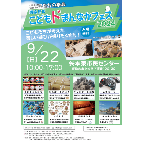 - 9/22【東松島市】こどもドまんなかフェス運営ボランティア募集