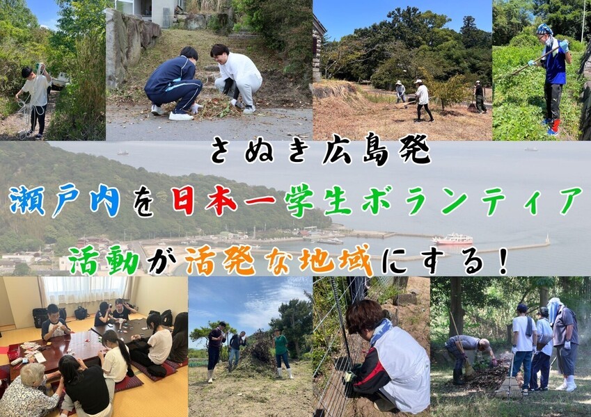 香川県、丸亀市、さぬき広島に遊びに来るついでに島のおじいおばあとボランティア活動する、里帰りのような感覚で参加して頂けたら嬉しいです。