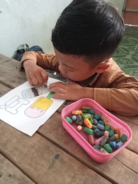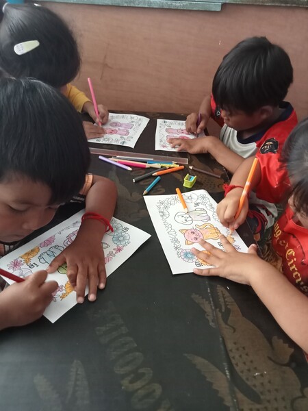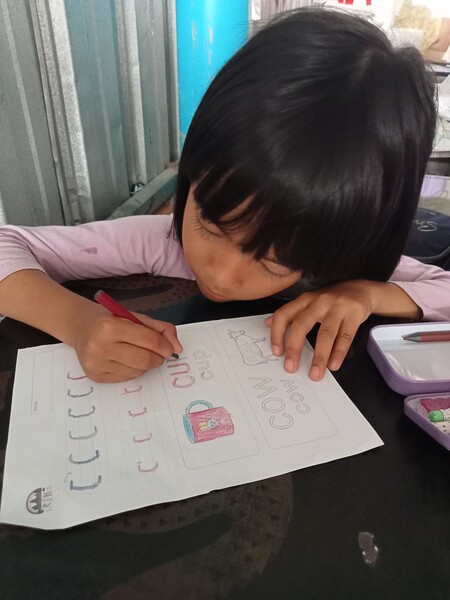 国際協力団体IROHAの皆さんからは2022年から定期的に英語アルファベットの塗り絵教材を送っていただいています。英語の塗り絵教材を通して生徒たちはアルファベットの書き方や読み方、簡単な単語を楽しく学んでいます。また塗り絵を通して、アートのスキルも高められています。