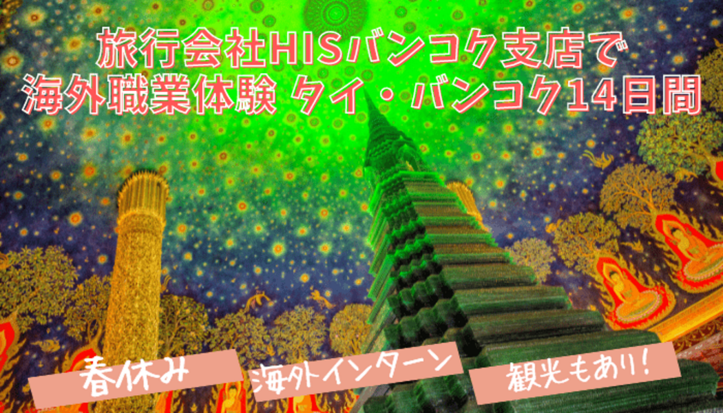 - 【インターンシップ】旅行会社HISバンコク支店海外職業体験タイ・バンコク14日間