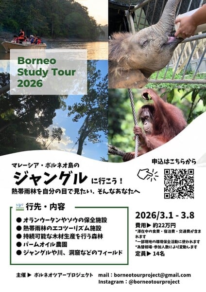 - 【熱帯雨林で環境問題・野生動物保全を体感しよう!】ボルネオスタディツアー