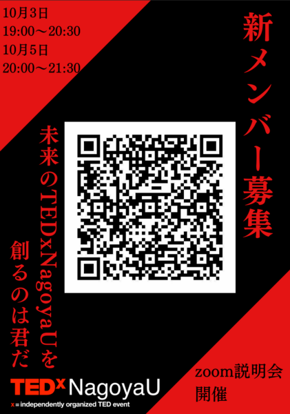 - 学生のみで数百人規模のイベント作成!!TEDxNagoyaU秋の新メンバー募集!
