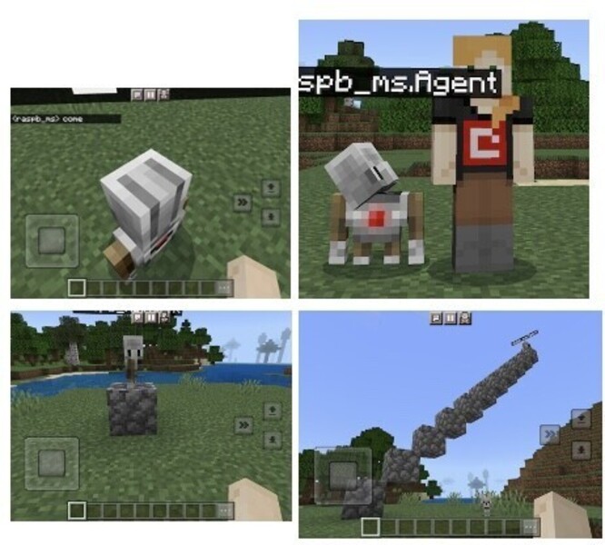 マイクラ・マルチプレイ時の画面です。3体のロボットに同じ作業をさせようとしています。こちらのマルチプレイは、11/3,4の「阿佐ヶ谷ICTひろば」で行う予定です。