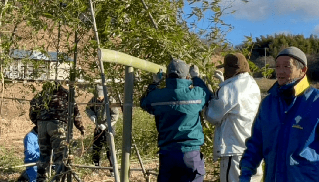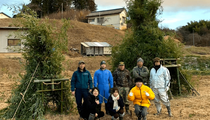 「どんと祭」は竹で小屋を建て、正月飾りや古い御札と共に燃やし、一年の無病息災を祈念する糠沢6区の伝統行事です。今回は正月飾り等をお焚き上げするために必要な「とり小屋」の組み立てのお手伝いを募集します!