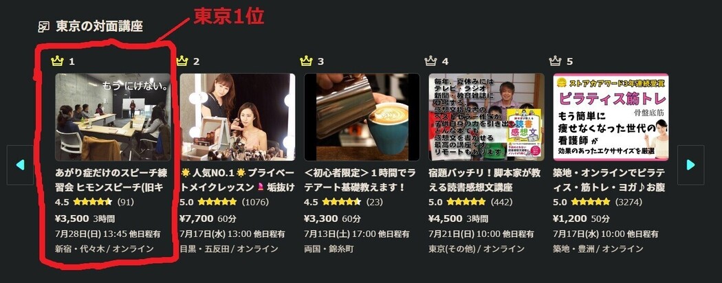 ※2024/7/21現在、東京の対面講座ランキングで、半年以上1位を守っています。