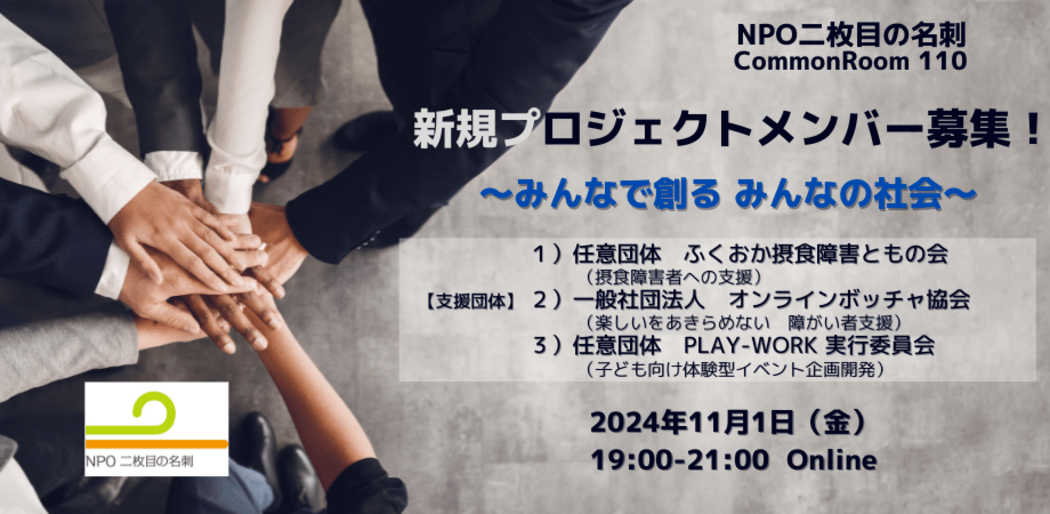- あなたの想いを社会課題解決の為に!11/1 新規プロジェクトメンバー募集説明会!