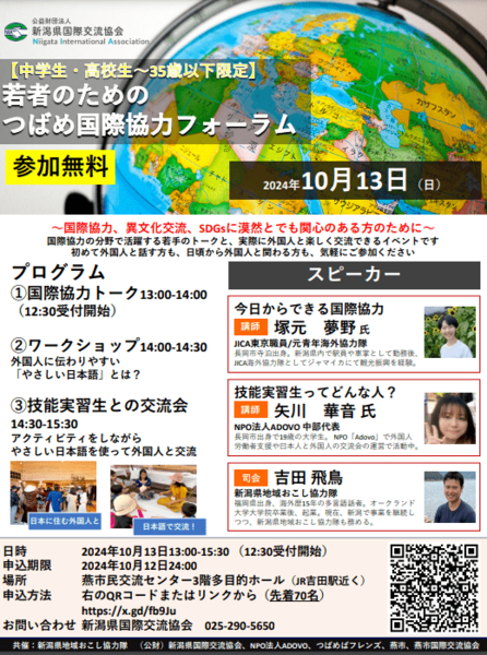 【学生大歓迎!】若者のためのつばめ国際協力フォーラム
