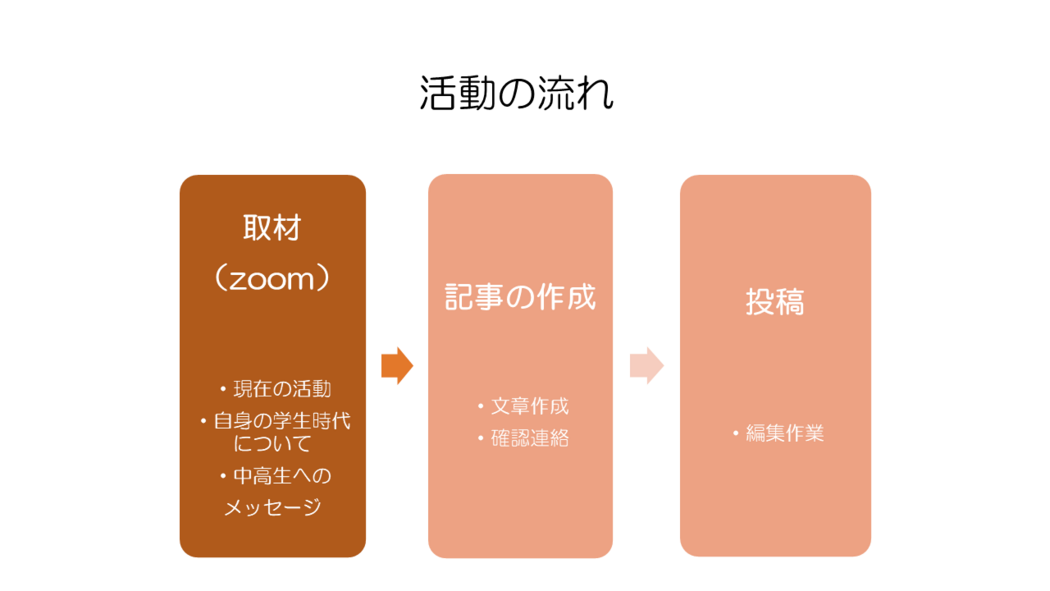 どのような中高生だったのか、現在どのような活動をしているのかをインタビュー記事にまとめています。