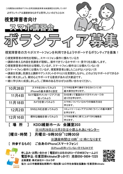 山口県山口市 視覚障害者向けスマホ講座サポートボランティア募集
