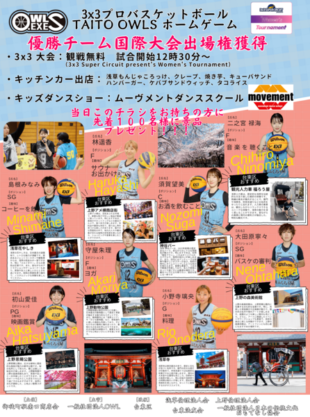 御徒町駅前に3人制女子プロバスケットチームが集結!迫力ある試合が観戦できます。
