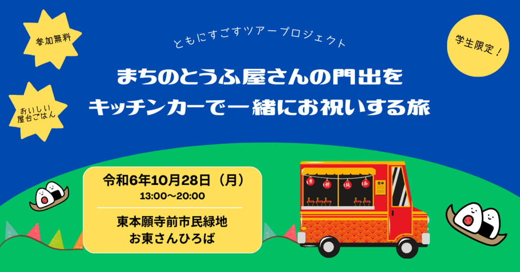 【※学生限定 10/28】キッチンカーでまちのとうふ屋さんの門出をお祝いする旅