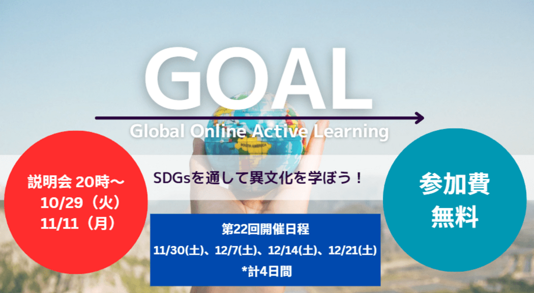 - 【説明会】グローバル人材育成プログラム「GOAL」第22回参加者募集!