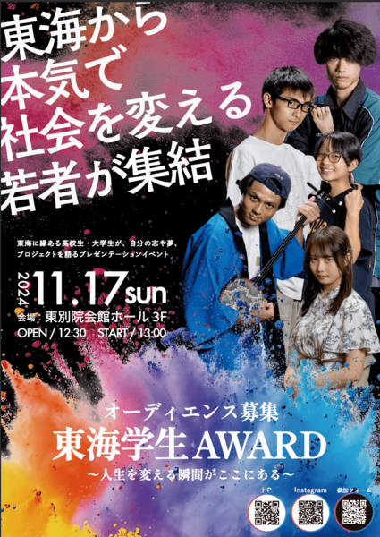 今期で7回目の開催を迎える東海学生AWARD。当日は、熱意をもって2か月間を駆け抜けた若者たちの声をぜひ直接お聞きいただければと思います。