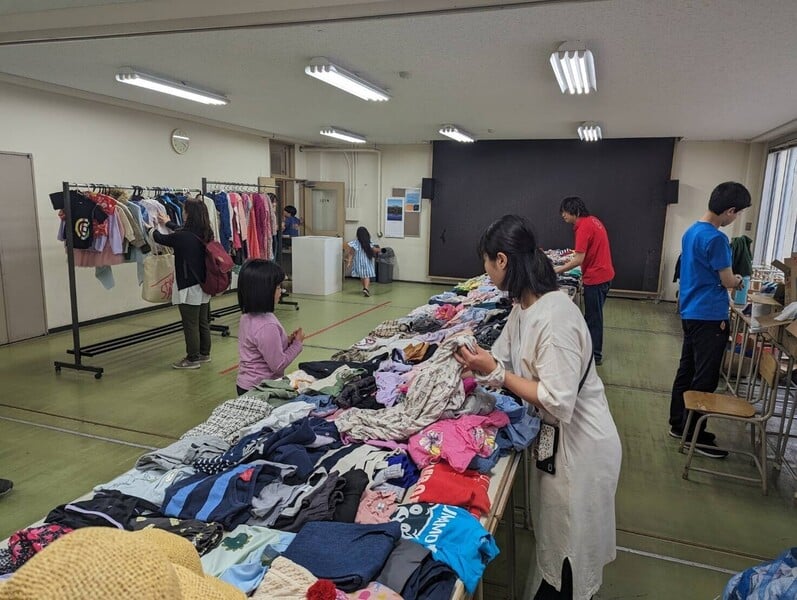 今年度から始めたSDGsの取り組みで、こども服交換会を行っています!1回目はYMCA館内の教室で行いました。