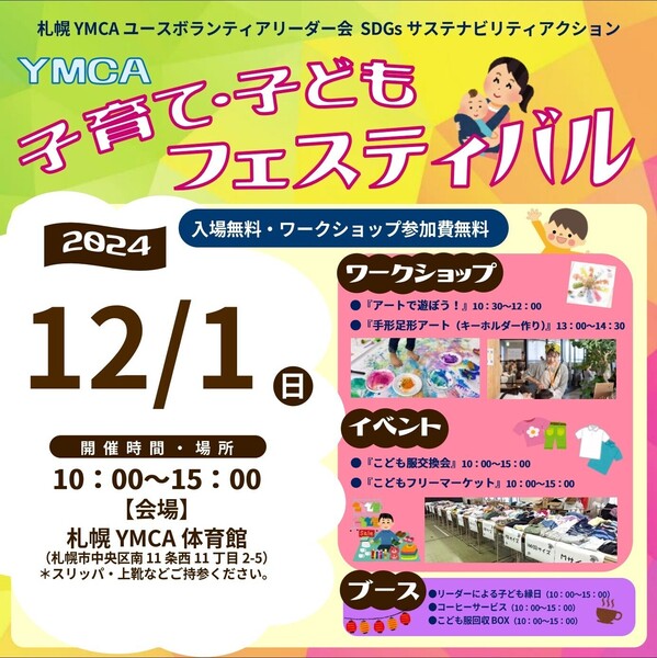 札幌YMCAのユースボランティアリーダー会が主催する子育てイベントの運営ボランティアを募集しています。地域課題の解決とSDGsの取り組みとして始めた「こども服交換会」と合わせて行う子育てイベントです。