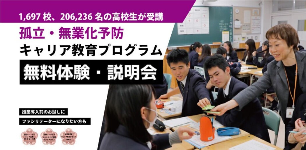「マネーコネクション®/ライフコネクション」は、主に高校生を対象にした、無業・孤立化を防止する出張授業プログラムです。認定ファシリテーターを募集するにあたり、無料の体験・説明会を実施します。1-3月