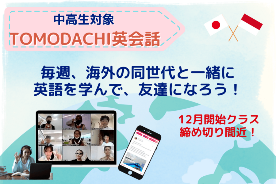 - 【残2枠:中高生募集12月〜】インドネシア生と文化交流を行い、英語力も鍛えよう!