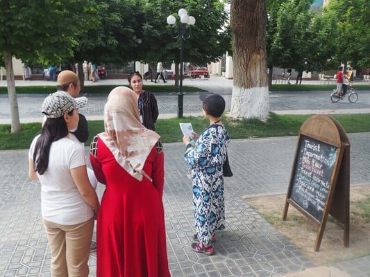 学生たちにとって、この案内所で外国からの旅行者と交流することが何よりの励みになります。日本語を学ぶ学生も多く、日本の方とお話しできる機会を心待ちにしています。古来よりシルクロードを通じて様々な民族や文化が交わり、今も世界中から観光客が集まる「青の都」サマルカンドで、観光案内所でのインターンシップならではの体験を楽しんでください!