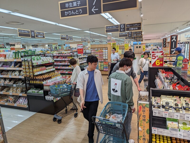 シビックセンター料理室に集合した後に、皆で作りたいものを決め全員で買い物に行きました。