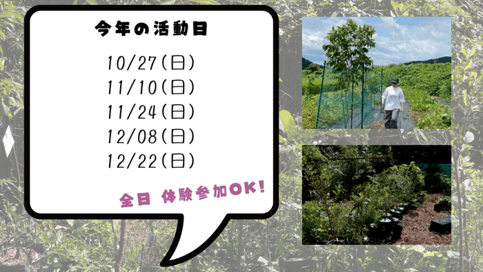 ピーカンナッツを栽培する森の中で、不登校の子どもたちを呼ぶフリースクールの設立を目指して空き家リフォーム&農業をするボランティアサークルです!