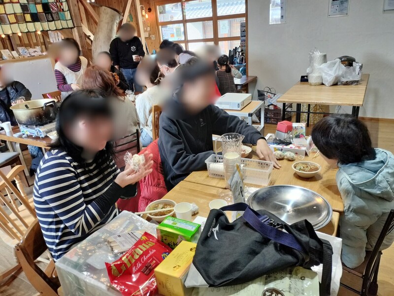 10時15分~13時00分 食事の準備(おにぎり・味噌汁)・食べる・後片付け