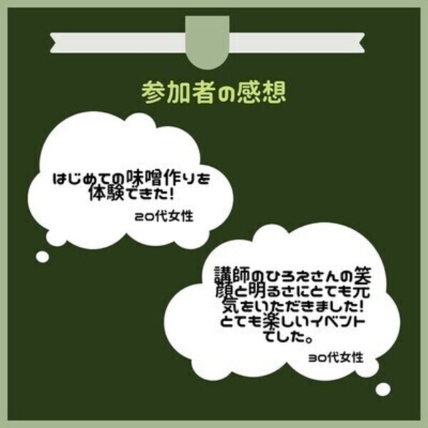 イベント当日は、参加者の皆さんと一緒に笑顔に包まれながら無添加味噌を作ることができます!