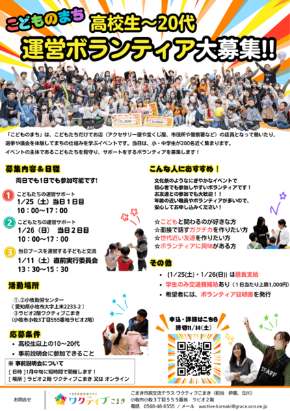 【高校生~20代対象】「こどものまち」運営ボランティア募集!