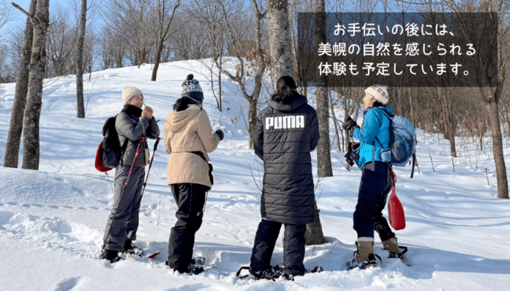 初心者でも簡単にできる作業ですので、ボランティア活動がはじめての方も、雪かきが初めての方も、どなたでも参加しやすい内容となっています。ボランティア活動の他には自然をたっぷり感じられる体験や、地域住民との懇談会も実施予定です。