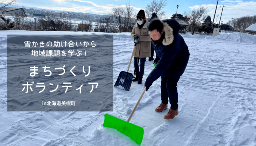 地域の自治会活動である「助け合いチーム」が実施している、高齢者や体が不自由な方の家の雪かき・除雪のお手伝いを通じて、地域課題の現状を学ぶまちづくりボランティアツアーです。北海道美幌町で開催します。