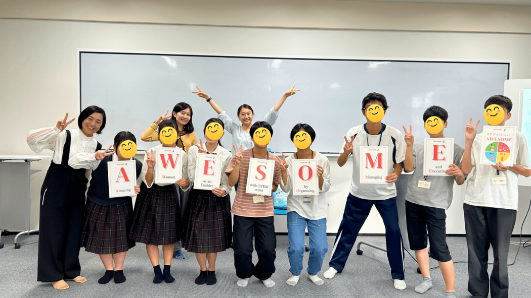 AWESOMEは、単語が持つ「最高!素晴らしい」という意味と、Amazing Women as an Enabler with STEM mind by Organizing, Managing and Executing(STEM(理系)マインドを持ち、状況を整理し、取りまとめ、実行することで、可能に変えていくAmaizing Women )という意味を持っています。