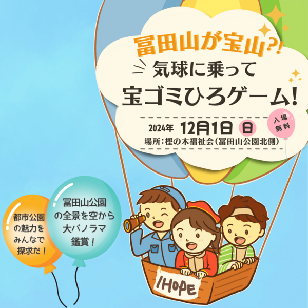 12/1(日)開催!気球イベント「冨田山が宝山⁉︎気球に乗って宝ゴミひろゲーム!」で、子どもたちやイベントの順番、交通整理のボランティアを募集します。