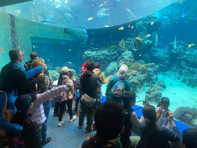 ・海洋博公園にある「水族館」「海洋文化館」「ウミガメ・マナティ・イルカの水槽」を散策する際の安全管理、レクリエーション企画