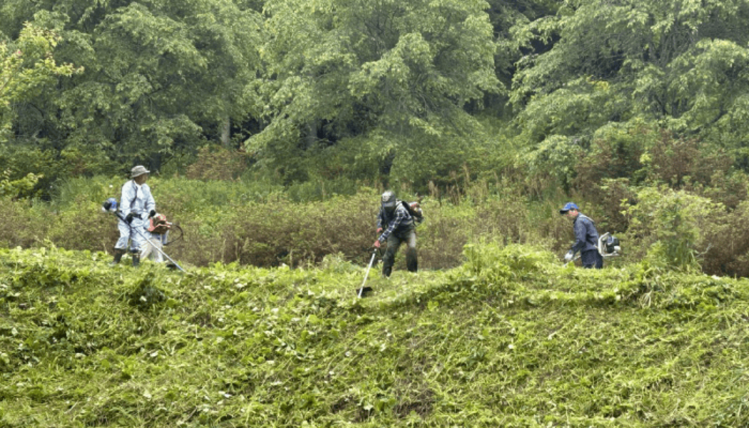 - 12:30 鮫川村の紹介、草刈指導、指導後に草刈り開始