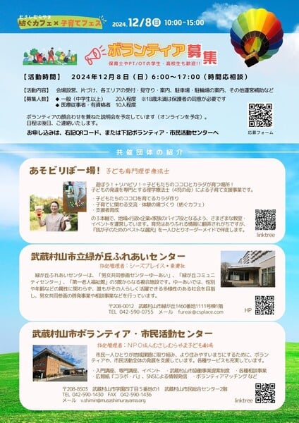 子どもが子どもらしくたくましく成長できるよう、新しい発見や新しい体験に家族みんなで出会って欲しい!をスローガンに様々な団体とコラボして企画したイベントです。体験・遊び・交流がテーマなので、是非ボランティアの皆さんも交流してください。