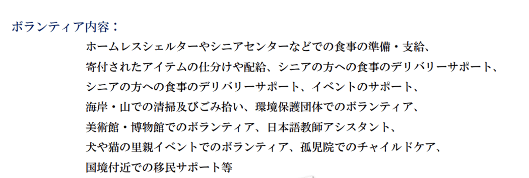 ボランティア内容は多様な内容から選択可能です。(時期によって受付不可の場合もございます)。