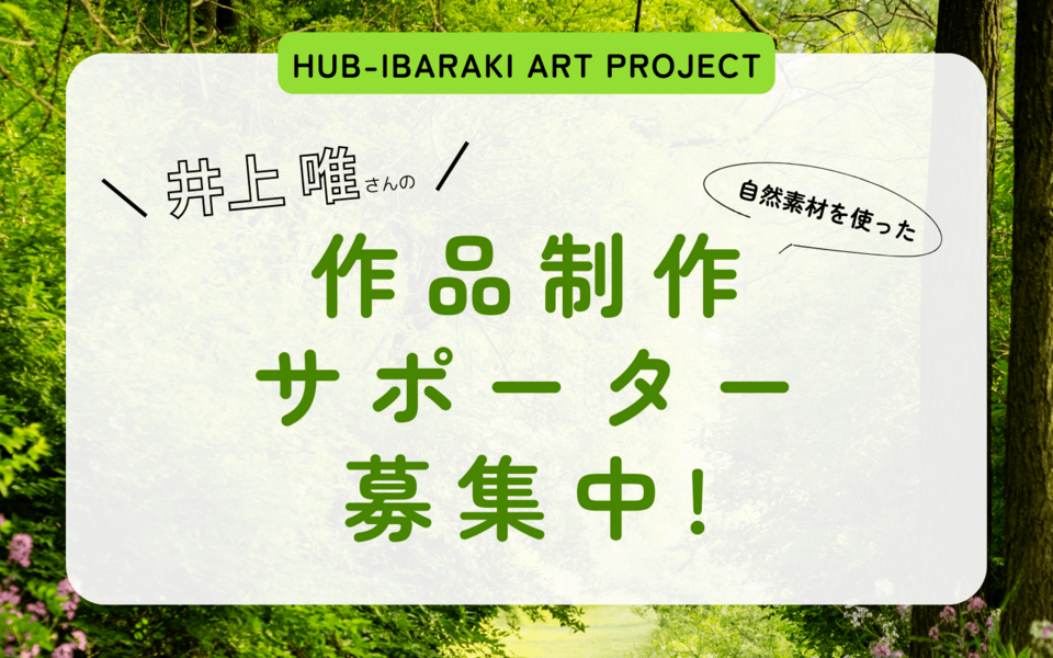 内容:HUB-IBARAKI ART PROJECT 2024で、井上唯さんの自然素材を使用した作品制作および会期中のサポートボランティアを募集します。
