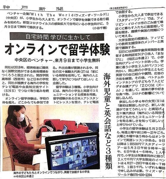 9. ç¥æžæ°è瀟ããªã³ã©ã€ã³ã§çåŠäœéšãïŒ2020幎4æïŒ