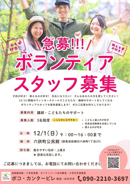 【1日体験】ポコウィンタースクールボランティアスタッフ募集要