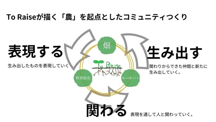 :いとおしいの詰まった野菜を地域に表現することで共感からつながりを生む。概要:農法は問わず「想い・こだわり」の詰まったお野菜を販売する。当団体で育てたお野菜と市原市近郊の農家さんから仕入れた「想い・こだわり」の詰まったお野菜をお届けしています。