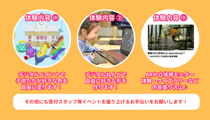 当日はペイント体験やオリジナルキャラクター制作・AR/立体視モニター体験やクイズラリー等を